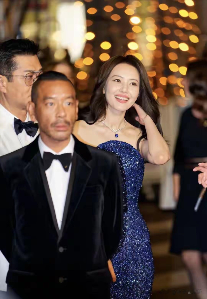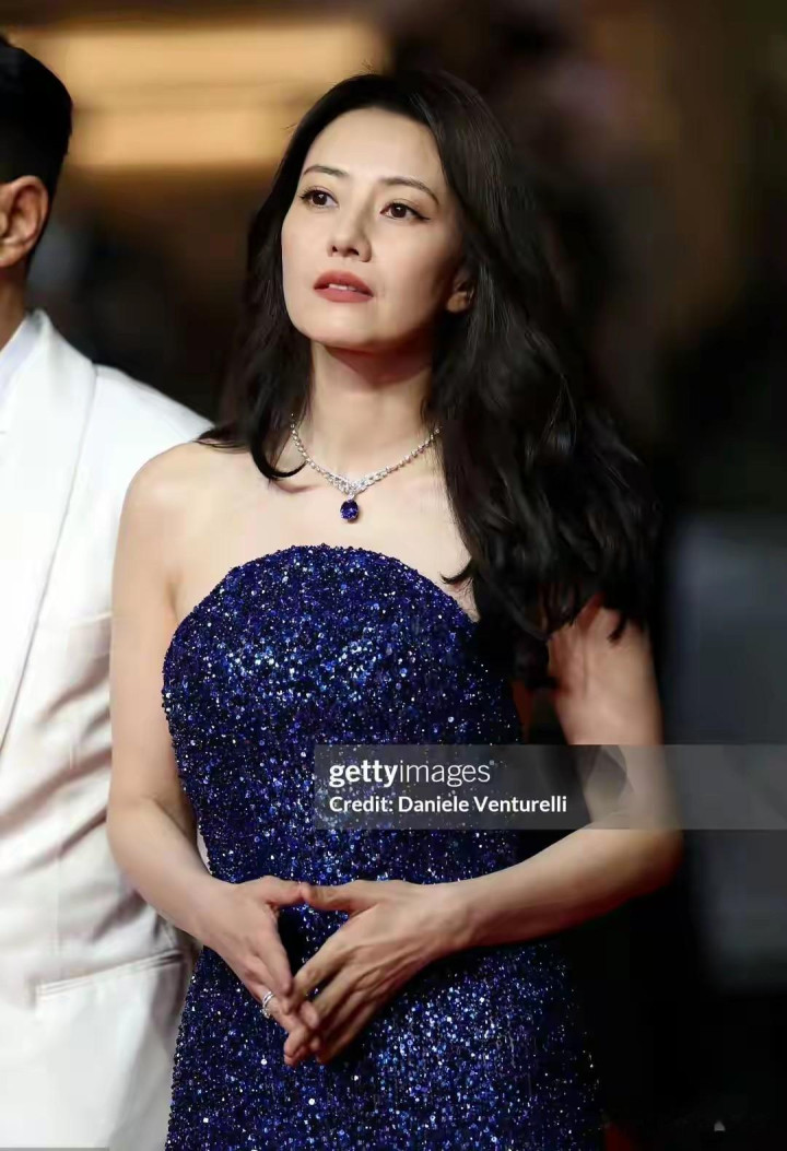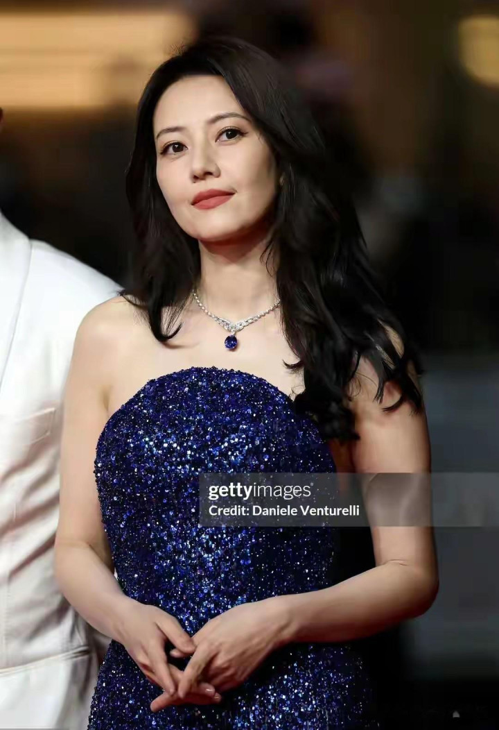 她的大波浪卷发自然垂落在肩头,为整体造型增添了几分慵懒与妩媚。搭配上精致的珠宝项链,在灯光下闪烁着柔和的光泽,与宝蓝色长裙相互映衬,更显高贵典雅。尽管已经46岁,岁月在她脸上留下了自然的痕迹,但这些痕迹并未削弱她的美丽,反而让她多了一份历经沉淀后的从容与淡定。外媒镜头下,她的一颦一笑都散发着东方女性独有的温婉端庄,被网友们称赞为“自然老去的范本”,成为了红毯上的一道亮丽风景线。