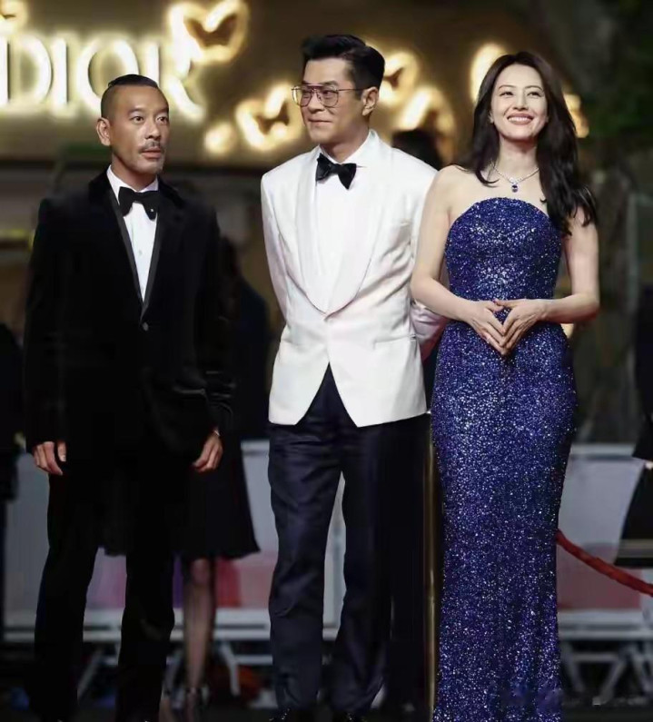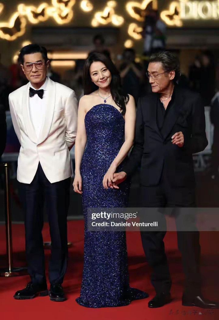 与高圆圆一同踏上红毯的,还有古天乐和梁家辉这两位港片界的传奇人物。古天乐身着一袭白色西装,简约而不失大气。他沉稳的气质与高圆圆的温婉相得益彰,两人站在一起,仿佛是一对从电影中走出的璧人,默契十足。